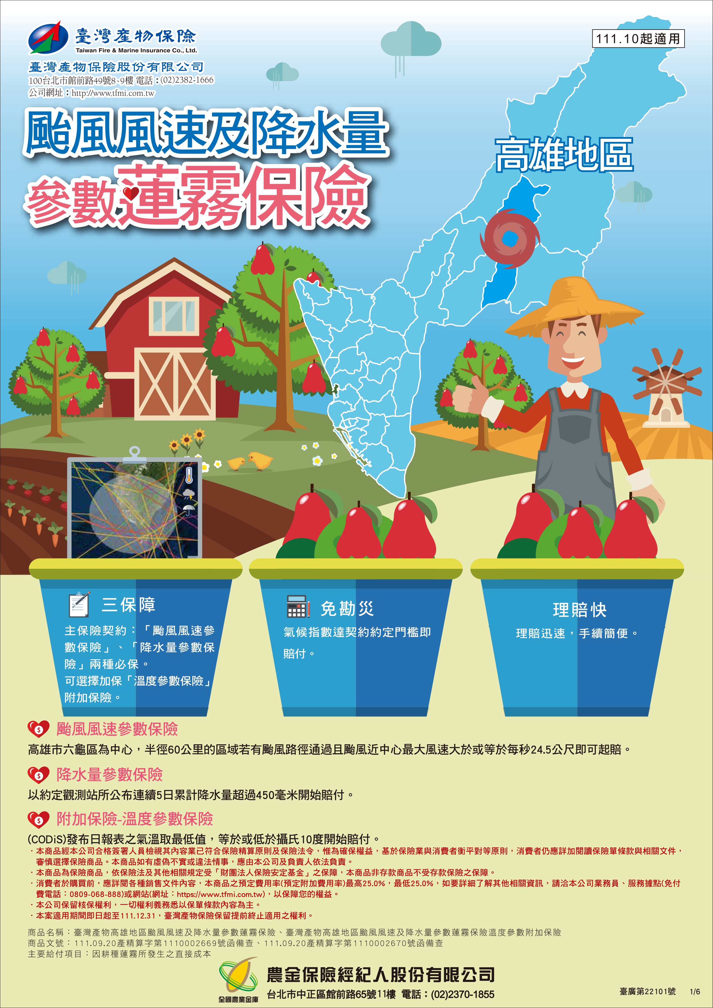 臺灣產物高雄地區颱風風速及降水量參數蓮霧保險-要保書