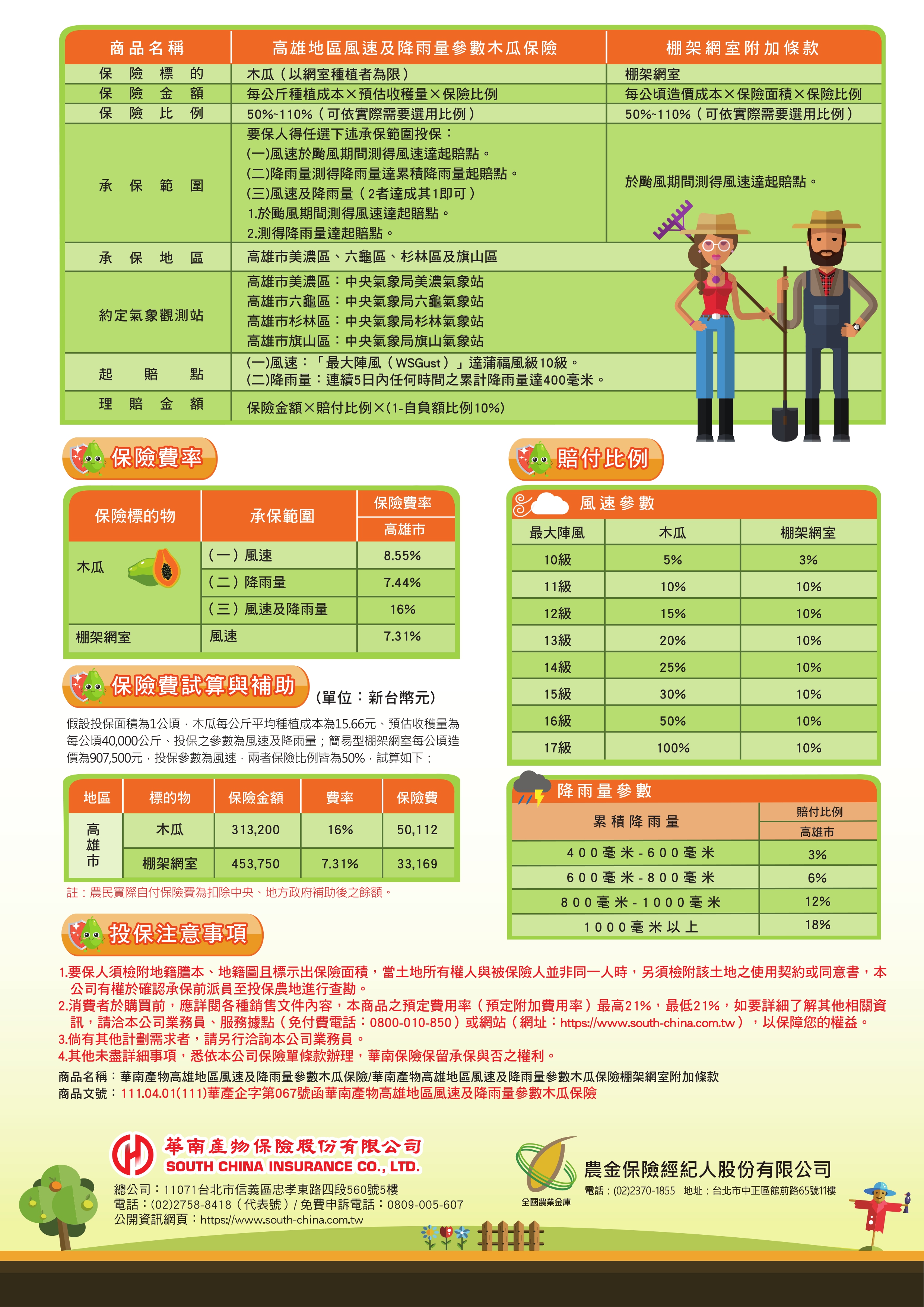 112年度華南產物保險高雄地區風速及降雨量參數木瓜保險