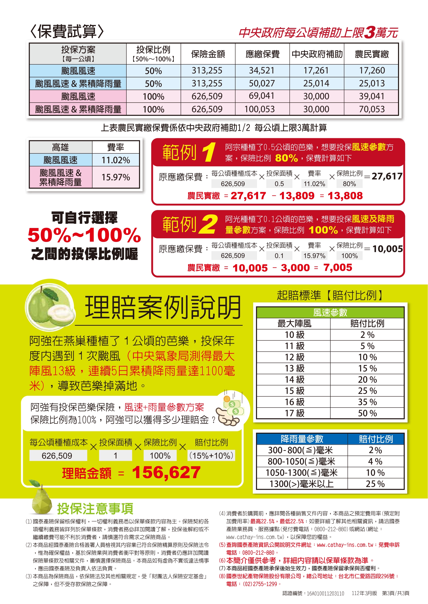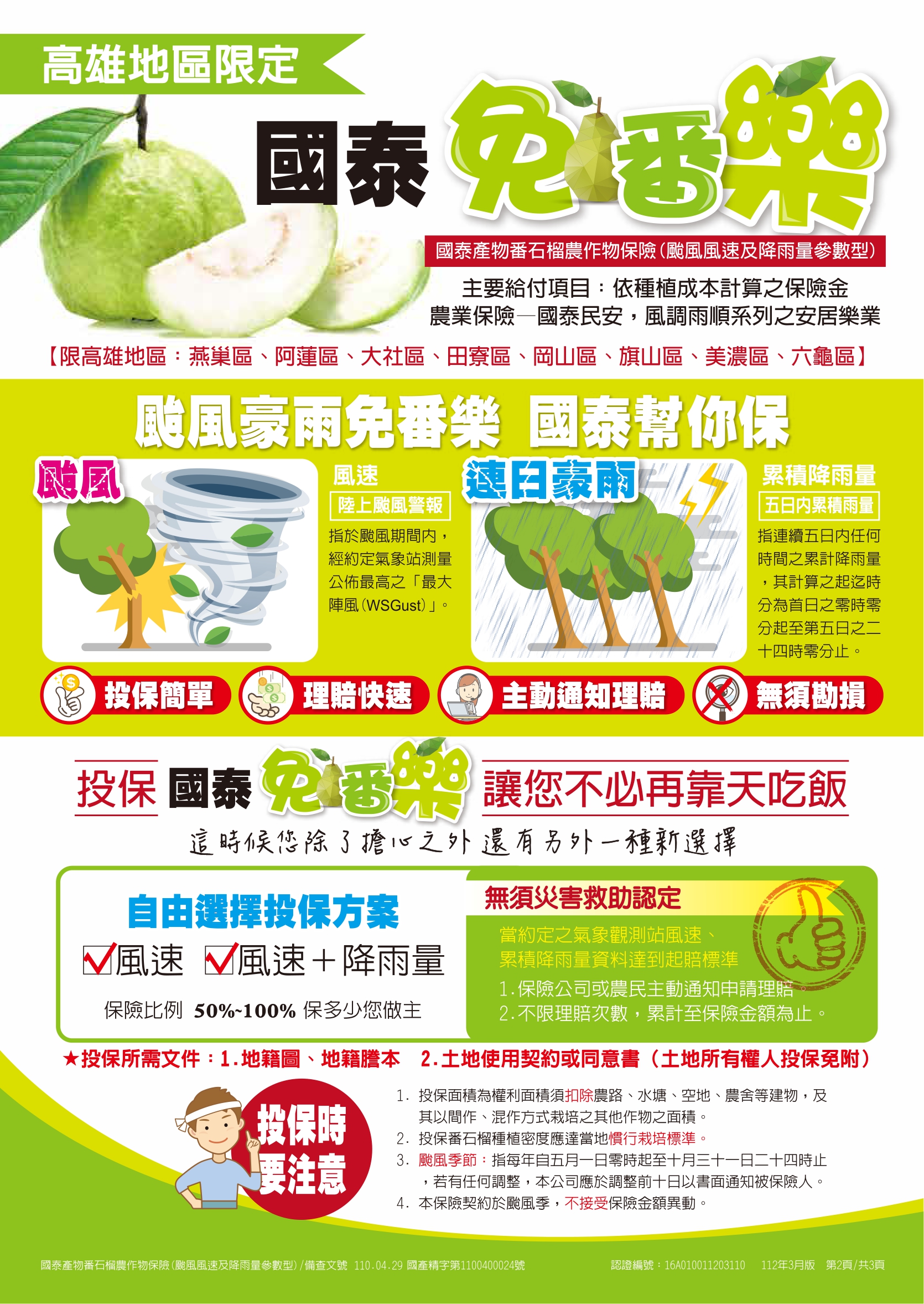 112年國泰產物番石榴農作物保險(颱風風速及降雨量參數型)