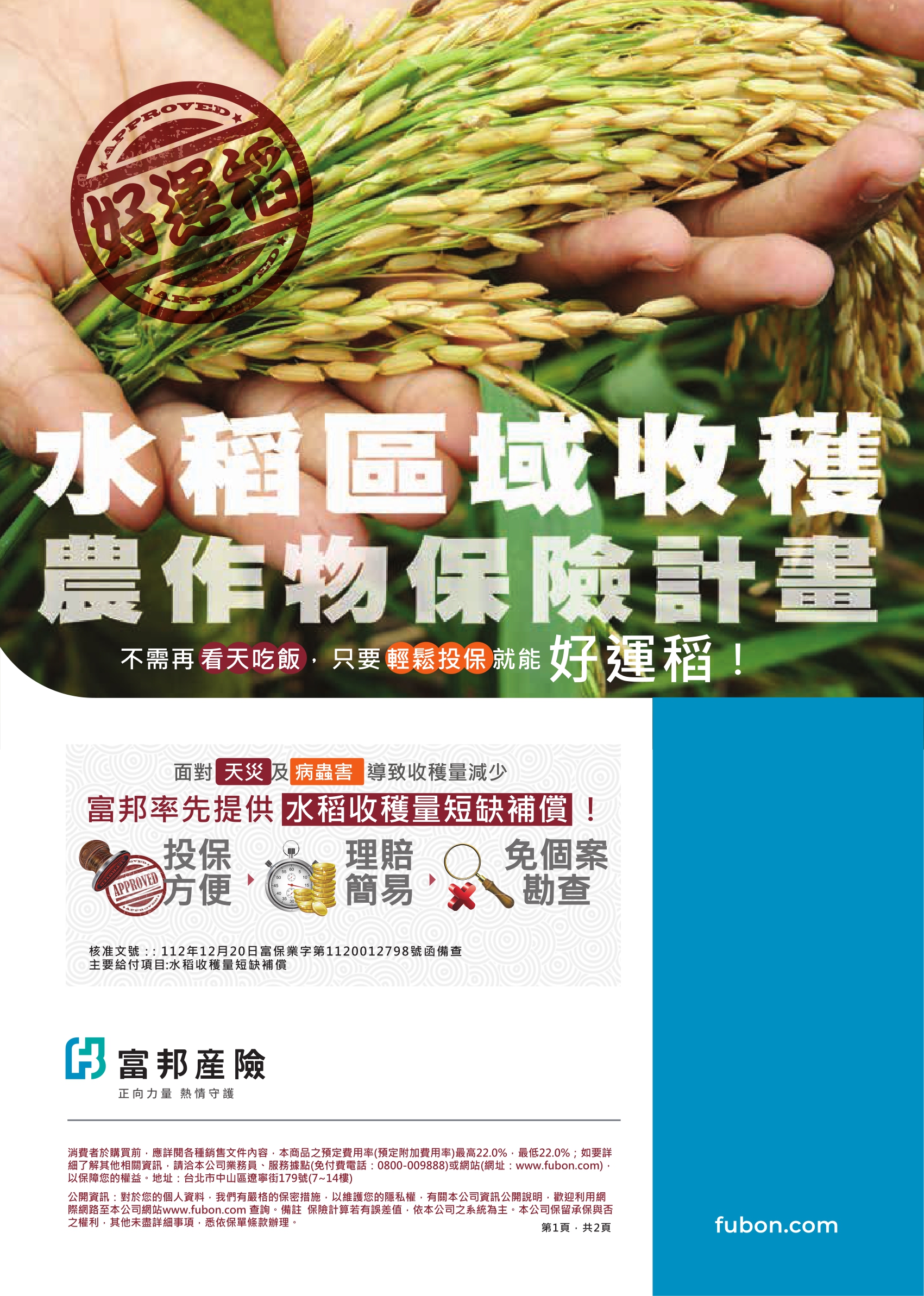 113年富邦水稻收穫型保險