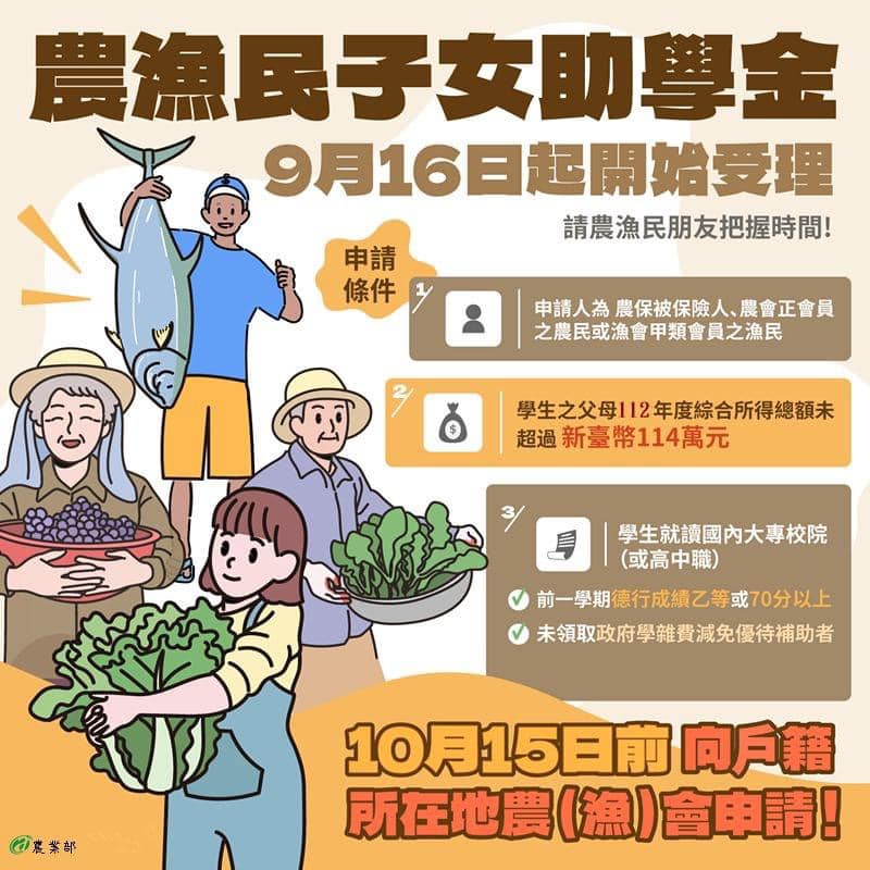 113學年度第1學期農漁民子女助學金開始受理申請