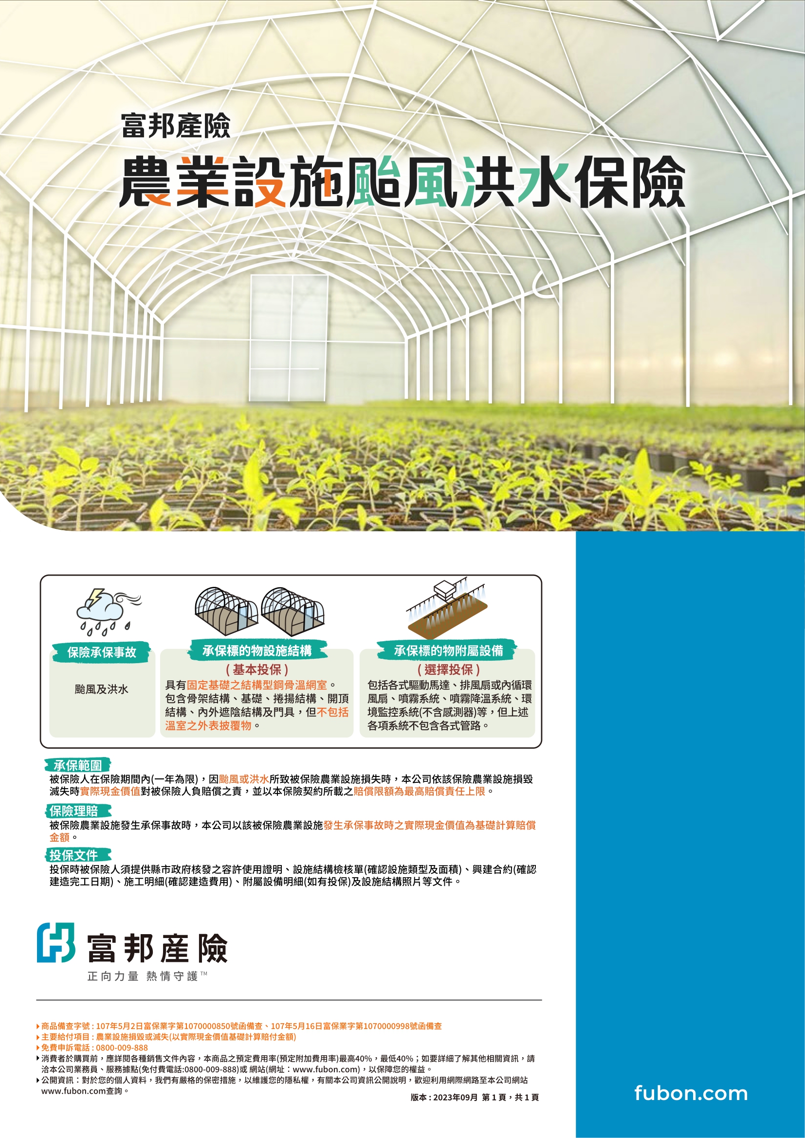 農業設施颱風洪水保險簡介、要保書及相關資料